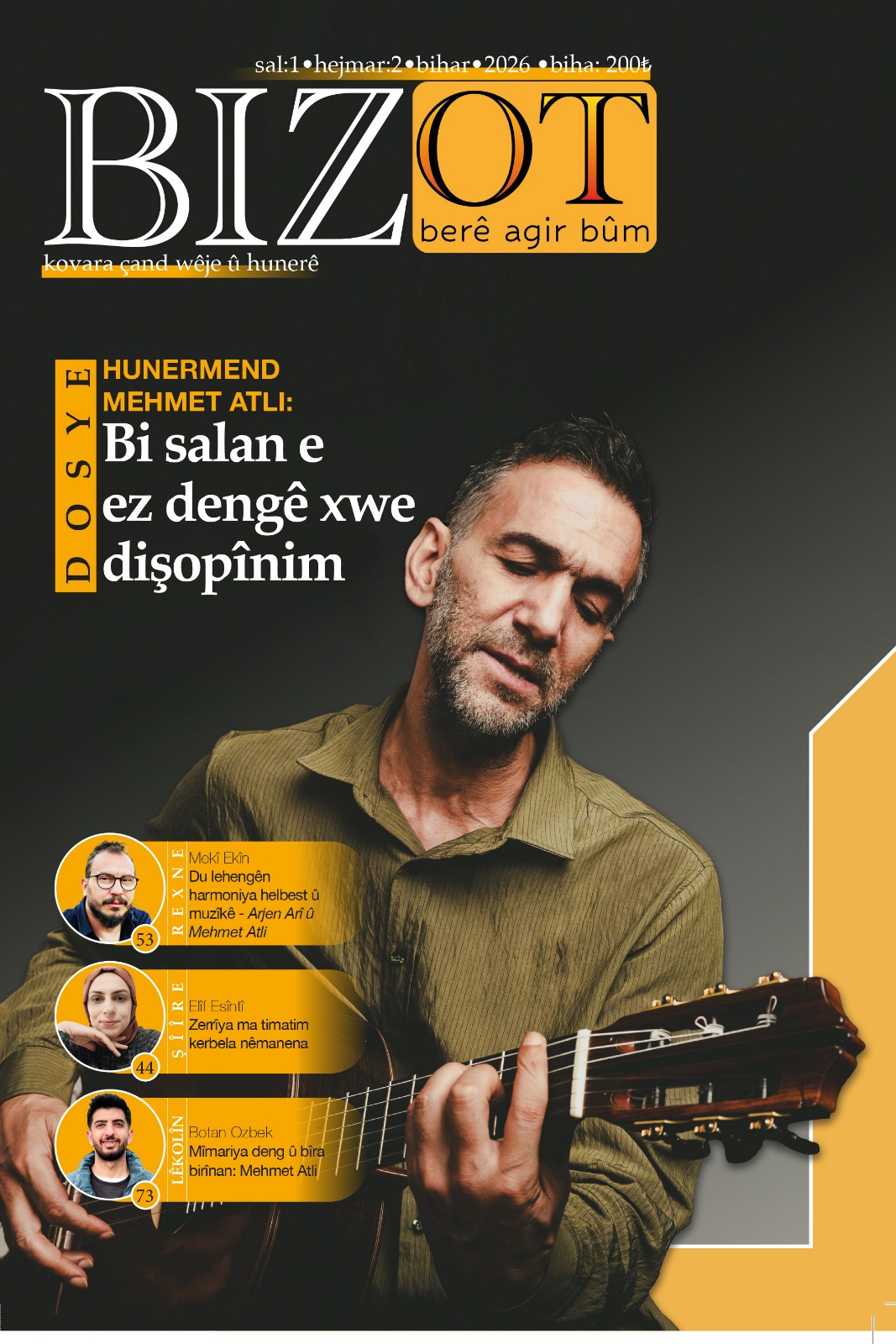 Me hunermendê hêja Mehmet Atli, yê ku nirxekî taybet li muzîka kurdî zêde kiriye, wekî mijara dosyeyê hilbijart. Me xwest ku em dosyeyê bi herdu zaravayên zimanê me kurmancî û kirdkî dewlemend bikin.